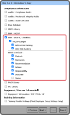 The What-If/Checklists will list all the What-If/Checklists in the Source Plant. You need to select all of the What-If/Checklist you want to copy. When you select a What-If/Checklist, you can choose to include the Before and After Risk Ranking entries. You can also specify which field data to copy (this applies to all of the What-If/Checklists you select).