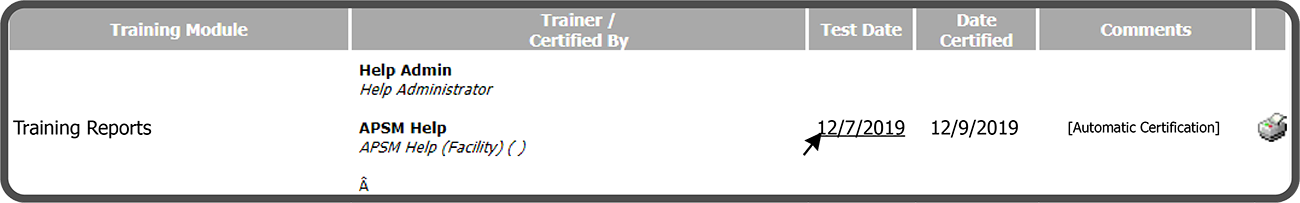 To view a Test Record, select the underlined Date located in the Test Date column.