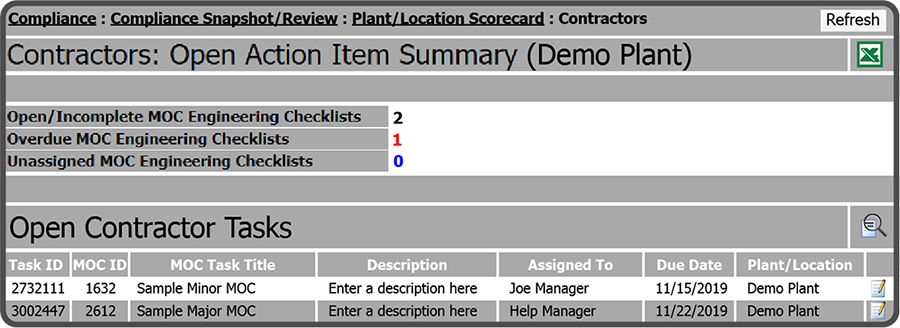 Scorecard - Management of Change (MOC) Open Action Item Summary
