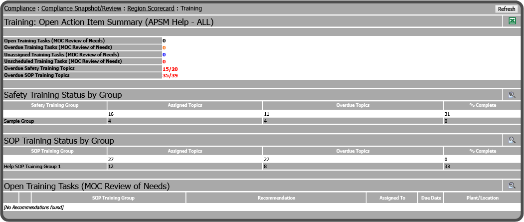 Lists the number of Overdue SOP Training Topics |