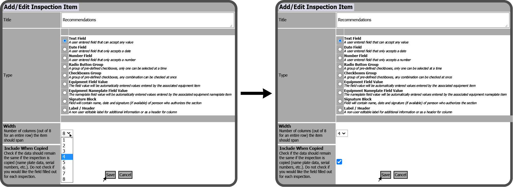 Edit Inspection Template Field