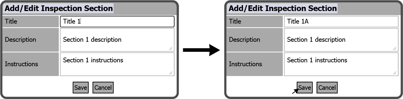 Adjust the Add/Edit Inspection Section fields as needed and select the Save Button
