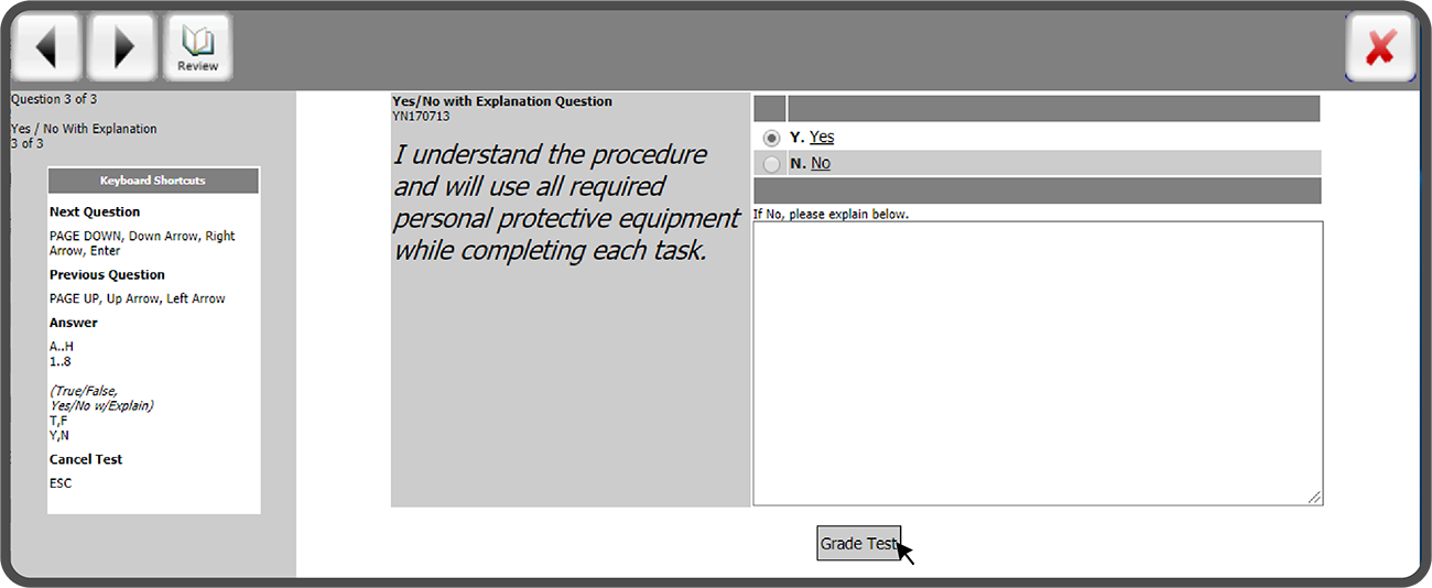 To complete an SOP Training Test, answer all of the Test Questions and then select the Grade Test Button