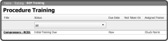 From the SOP Training/Touchscreen Interface Grid you can view an SOP Training's Title, Status (can be used to filter the Grid), Due Date, Test Taken On, and Assigned Trainer. You can also begin Training by selecting the SOP Training Title.