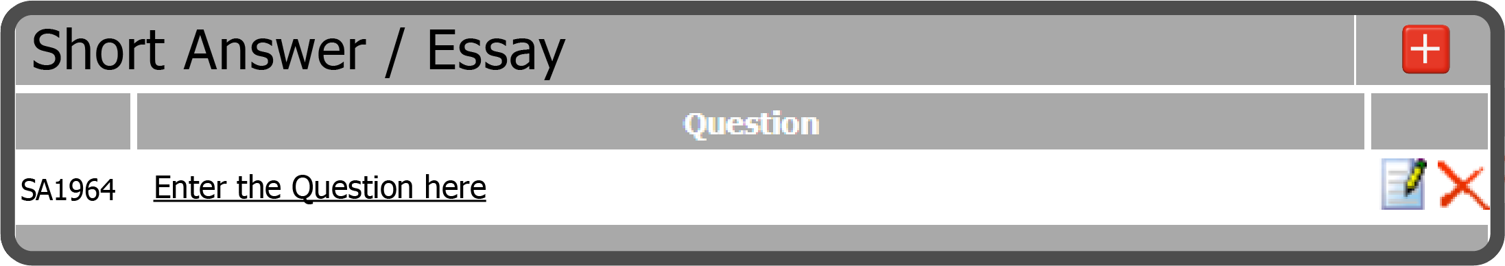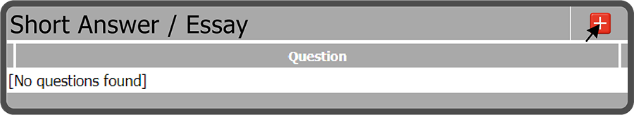 This will open the Short Answer / Essay page. Select the Add Question Icon