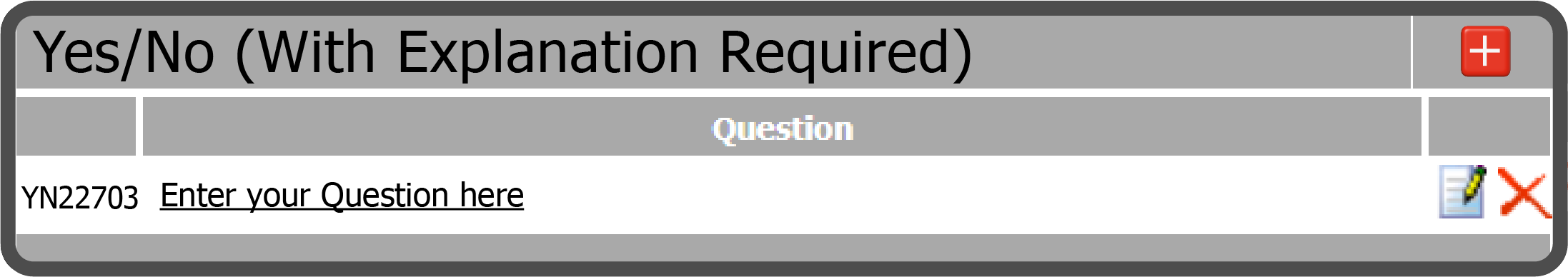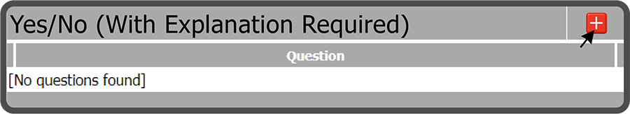 This will open the Yes/No (With Explanation Required) page. Select the Add Question Icon
