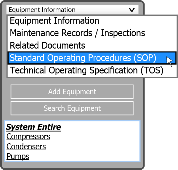From within the Equipment Information Manager, select the drop down next to Equipment Information