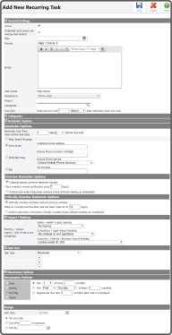This will open the Add New Recurring Task page. Enter the Task details in the General Settings, Reminder Options, Impact/Ranking, Task Link, Recurrence Options, and select the Save Icon