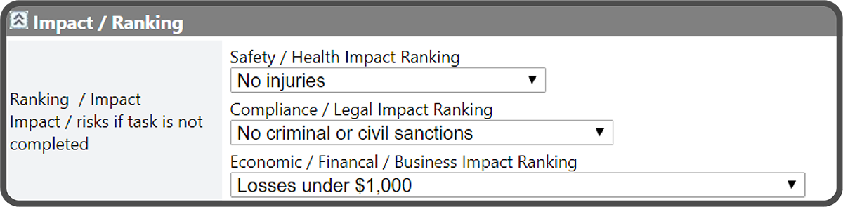 The Impact/Ranking section allows you to set the impact or risk for a Task that is not complete (optional).