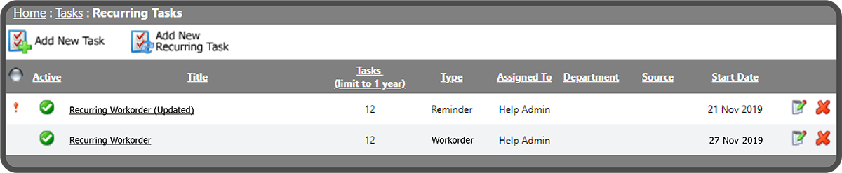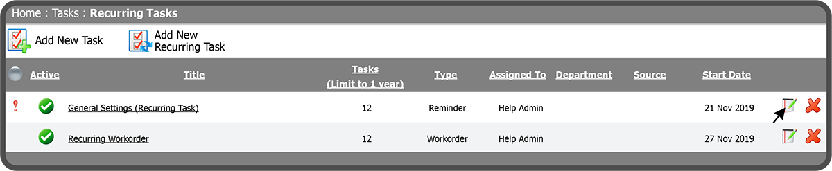 To edit a Recurring Task, select the Edit Icon