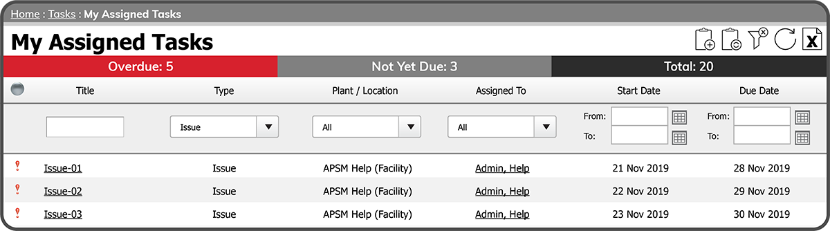 The Issue Task Type is a Task assigned to you from the Continuous Improvement Program or CIP System.