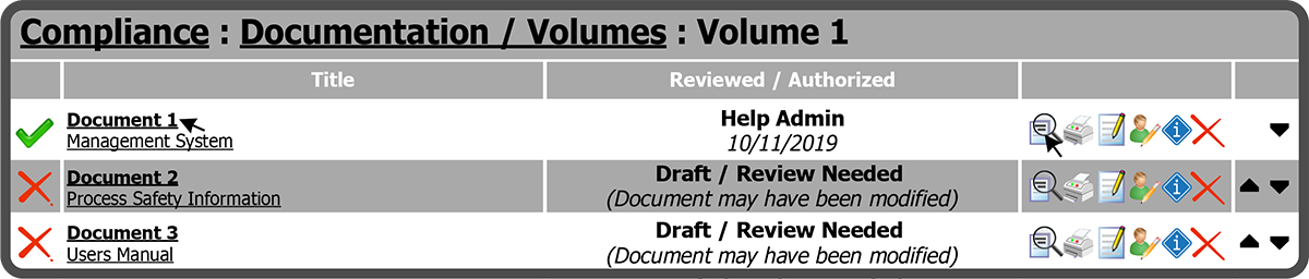 To add a Chapter to an Online Document/Volume, either select the underlined Title of the Volume or select the View Icon