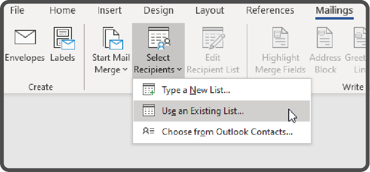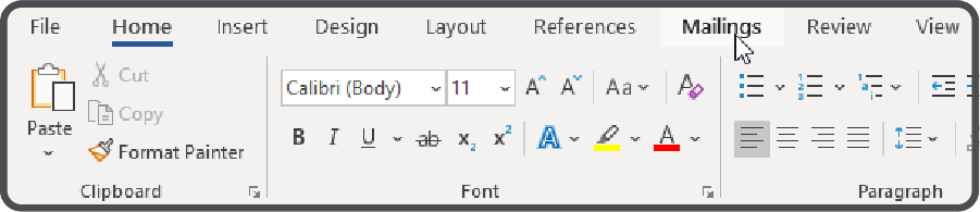 To add Merge Fields to your Volume, make sure you have downloaded the Fields List from the Volume Builder. Open your Volume in Microsoft Word and select Mailings from the ribbon.