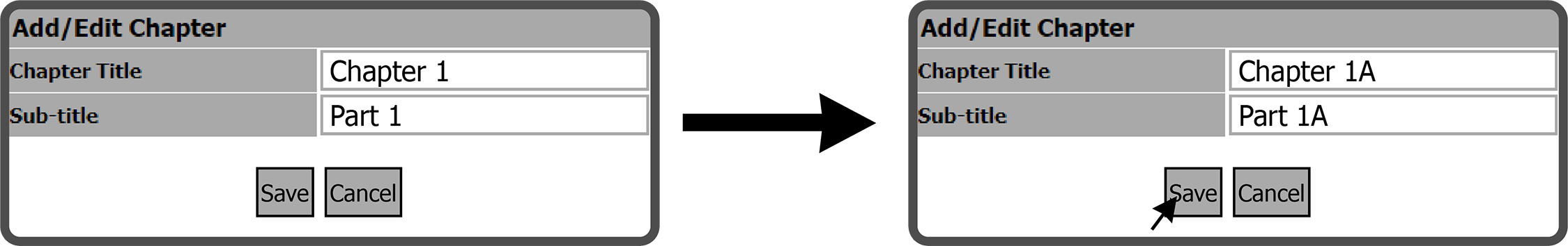 This will open the Add / Edit Chapter window. Adjust the Chapter Title and Sub-title as needed and select the Save Button