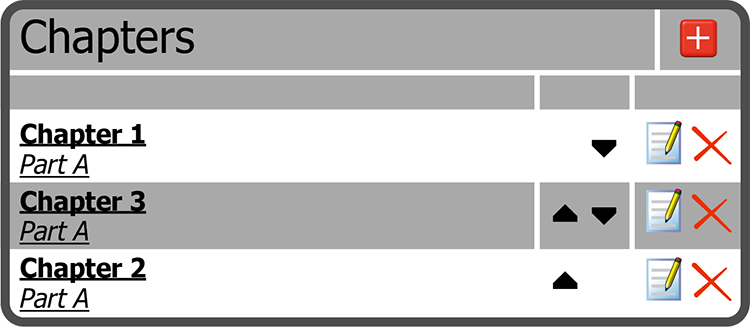 To move a Chapter, select the Move Up or Down Icons to the right of the Chapter.